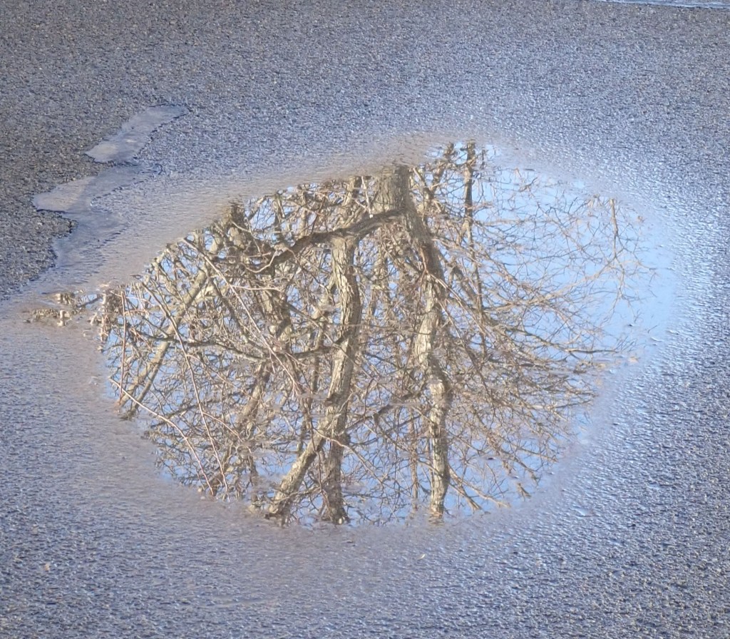 Posted in americana, close up details, haiku, light, nature, paths, photos, poems and photos, puddles, reflections, snow, trees, winter