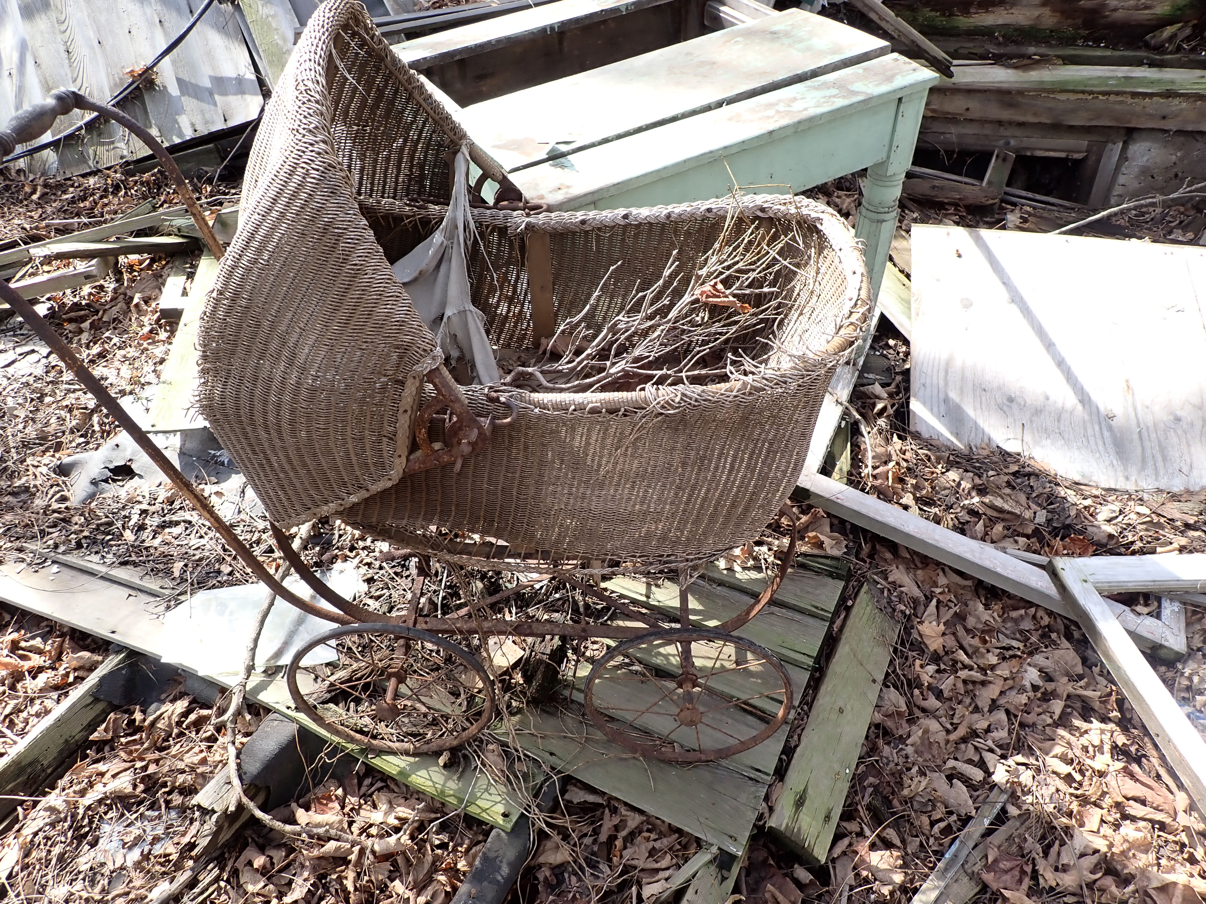 abandoned, abandoned house, baby carriage, carriage, collapsed, haiku, house, old, outside, Ovid, photography, photos, poetry, spring, surviving